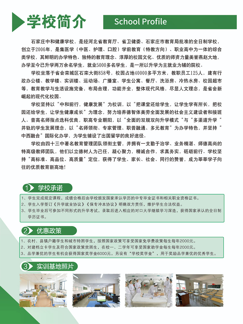 石家庄中和健康学校,是经石家庄市教育局批准的一所全日制的医学类职业高中。学校创办于2006年,学校主要开设的专业有中医康复、口腔修复工艺、护理(中西医结合方向)、眼视光技术。
