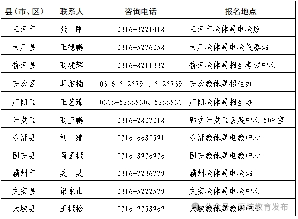 (一)八年级学生地理、生物学考试时间由河北省教育厅安排,具体笔试时间为6月23日;生物学实验考试、信息科技考试时间由廊坊市教育局安排。具体考试时间确定后,廊坊市教育局、廊坊市教育考试院将通过官方网站及公众号及时向社会公布。