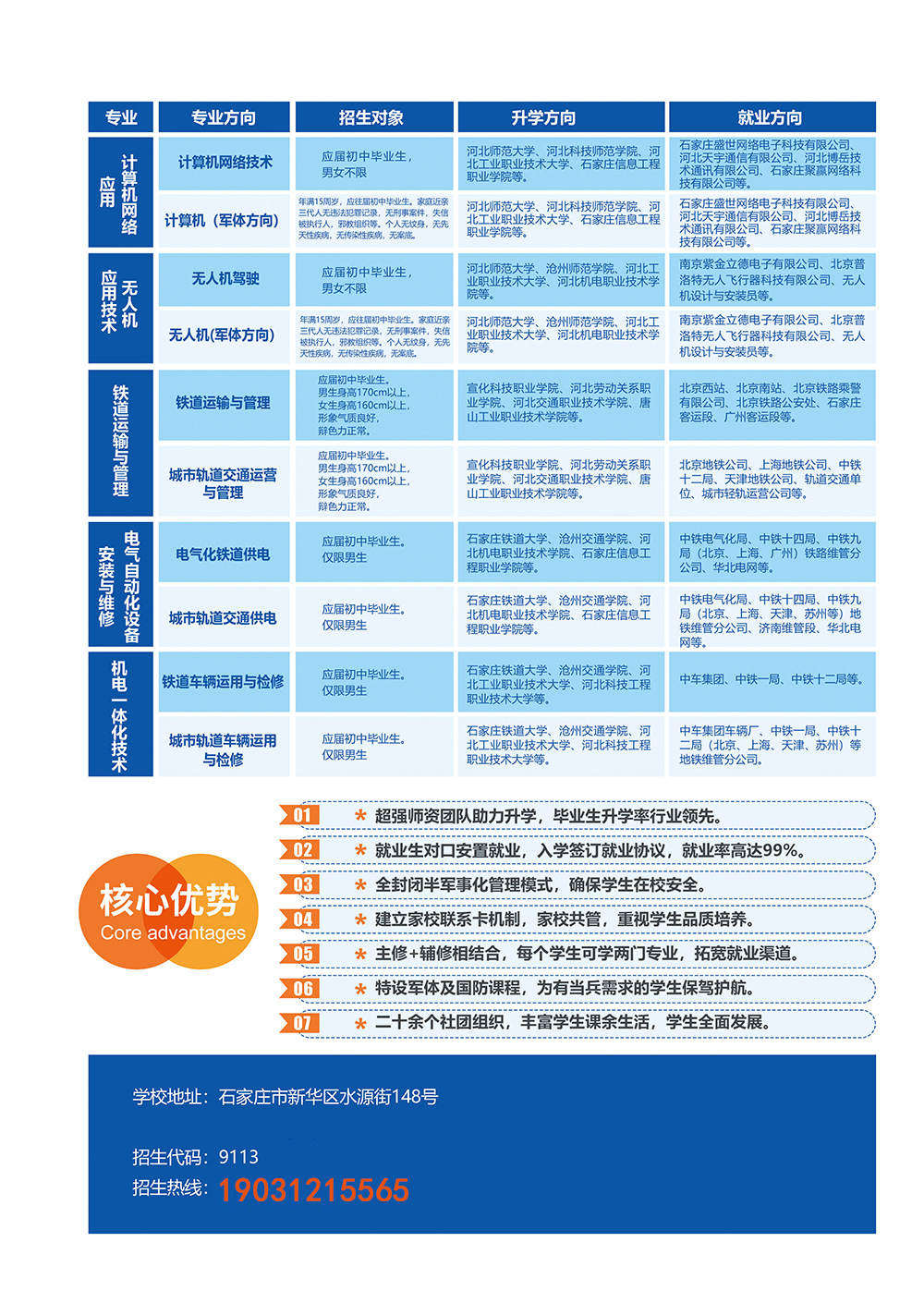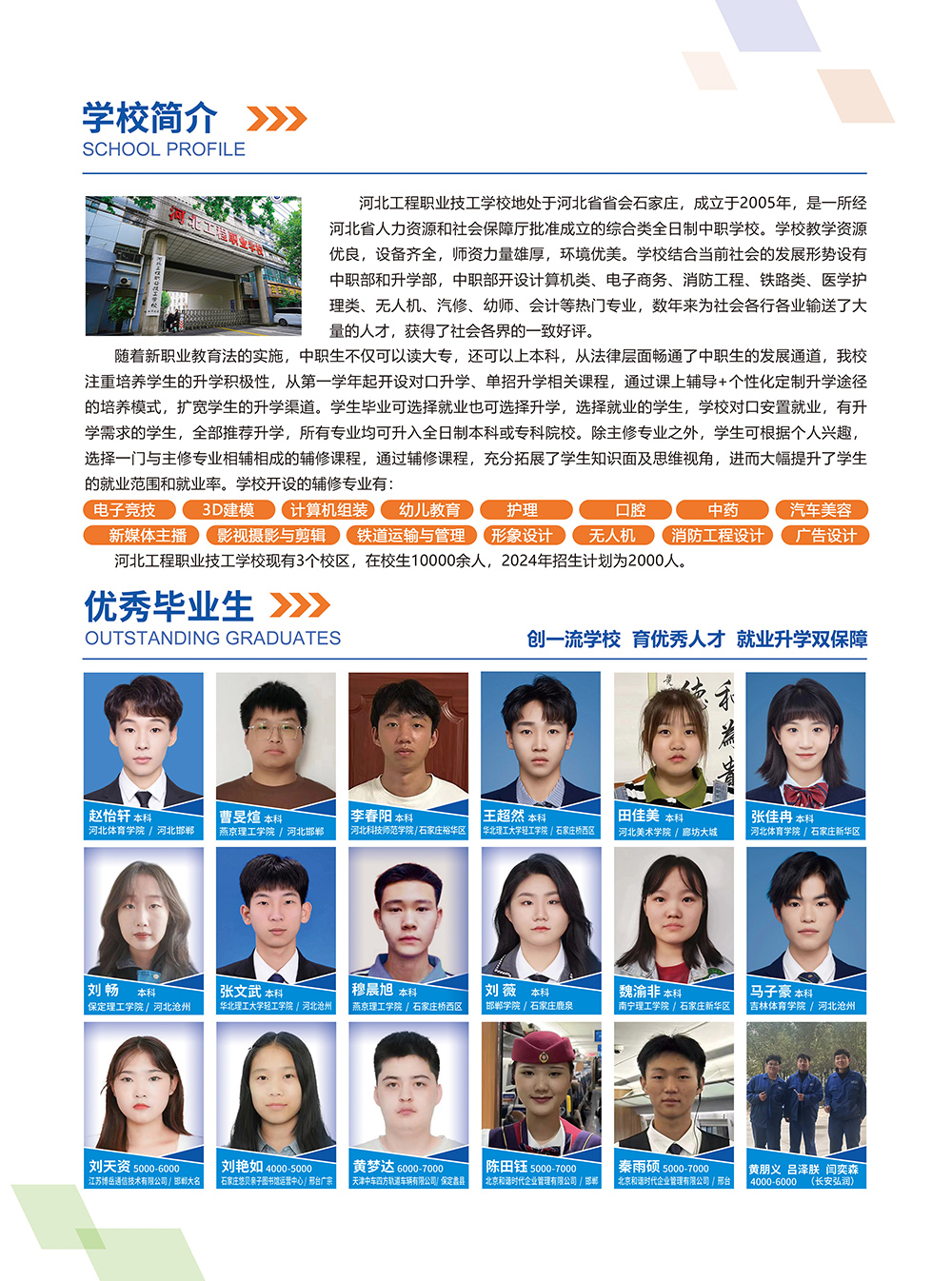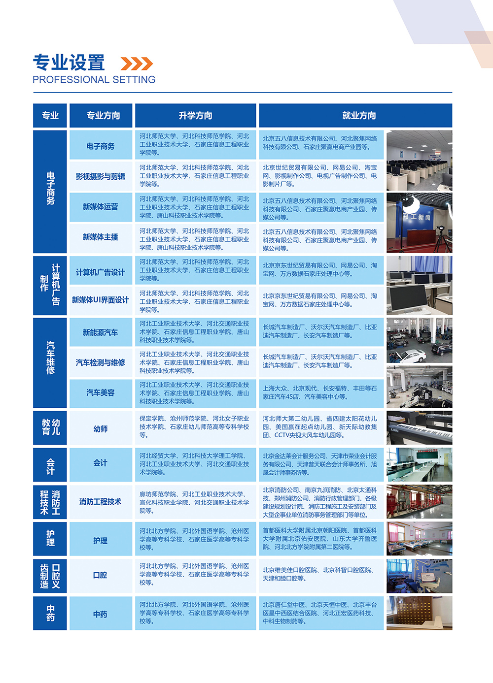 河北工程职业学校春季招生开始啦! 河北工程职业学校开设:铁路、机电、幼师、会计、汽车维修、消防工程技术、无人机驾驶、UI设计、计算机类、现代物流等8大类22个专业。 招生对象:14-17周岁初中应往届生(初三应届与往届毕业学生)